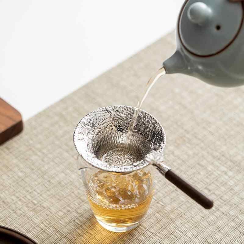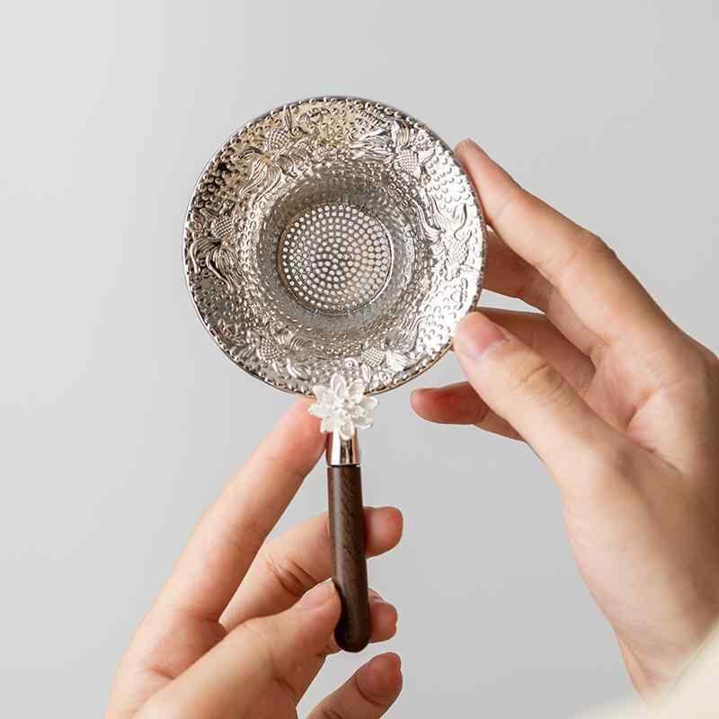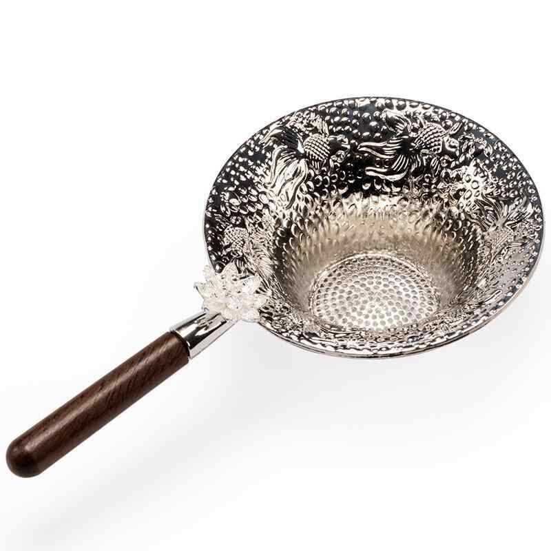 茶漉し 304ステンレス 取っ手付き 茶こし おしゃれ シルバー ティーフィルター 功夫茶器 茶道小物 茶葉分離 シンプル 中華風 蓮柄 魚柄 高級感 普段使い