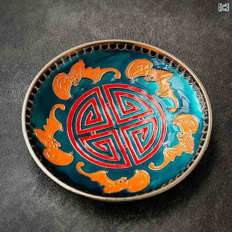 茶托 景泰藍 琺瑯彩 銅製 金属製 耐熱 円形 コースター カップ敷き 茶道 茶器用 和モダン 花柄 吉祥柄 来客 おもてなし 高級感 華やか おしゃれ