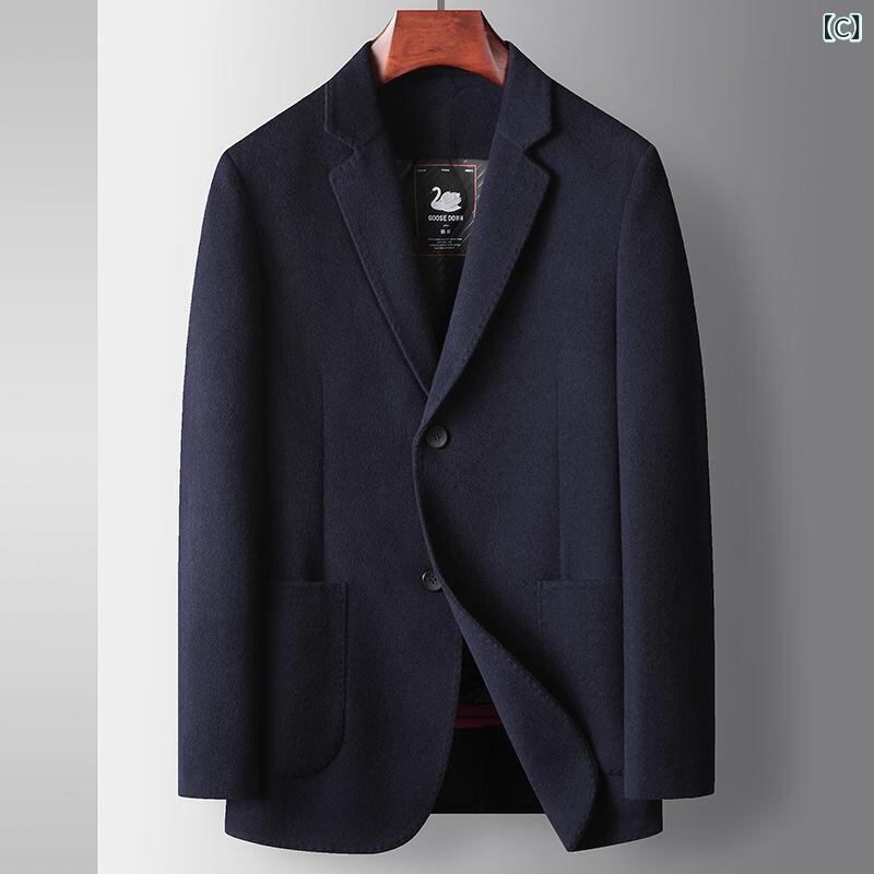 メンズ ジャケット ビジネス テーラードカラー ウールブレザー 紳士服 秋冬 羊毛100% ダブルフェイス 取り外しダウンライナー 保温 防寒 アウター 通勤 オフィス レギュラーフィット