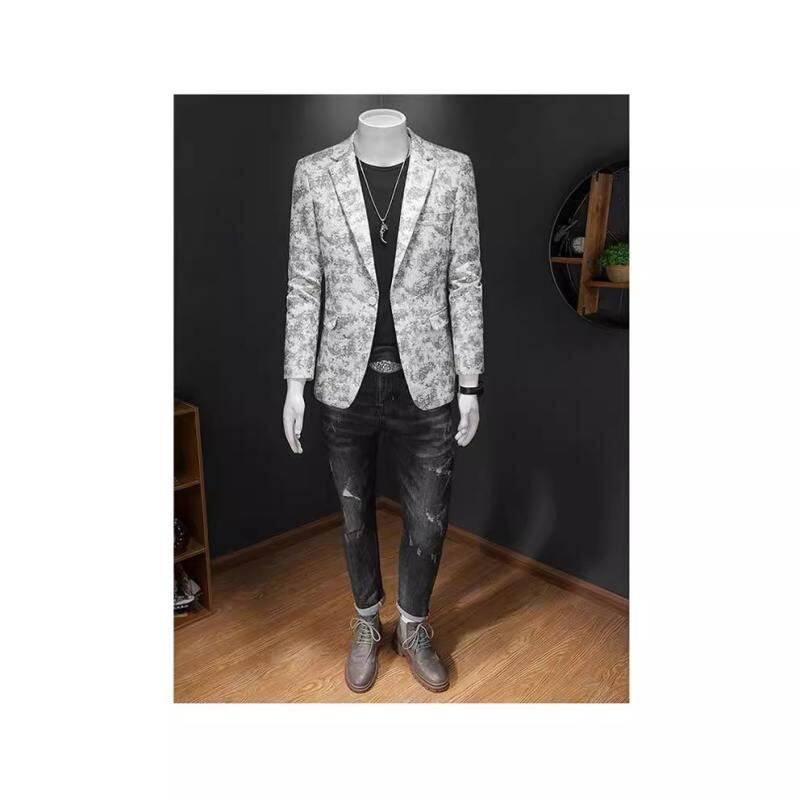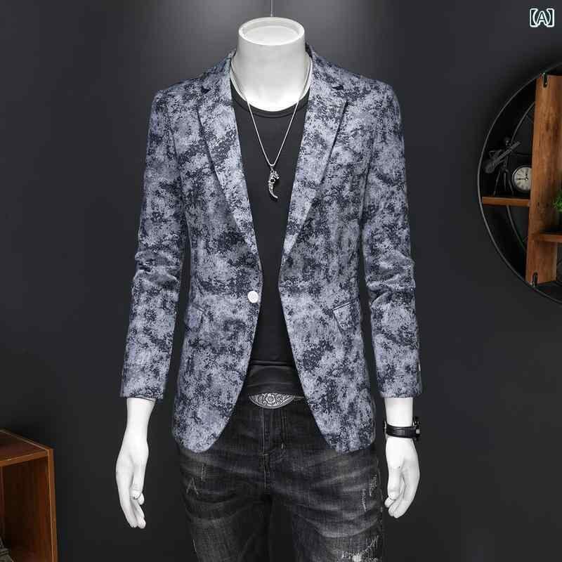 テーラードジャケット メンズ 男性用 春夏 韓国風 韓流 トレンド ファッション おしゃれ カジュアル スリム 細身 テーラードカラー シングルブレスト 一つボタン 綿混 ポリエステル混 ノーアイロン シワになりにくい 普段使い デート ビジネス デニム