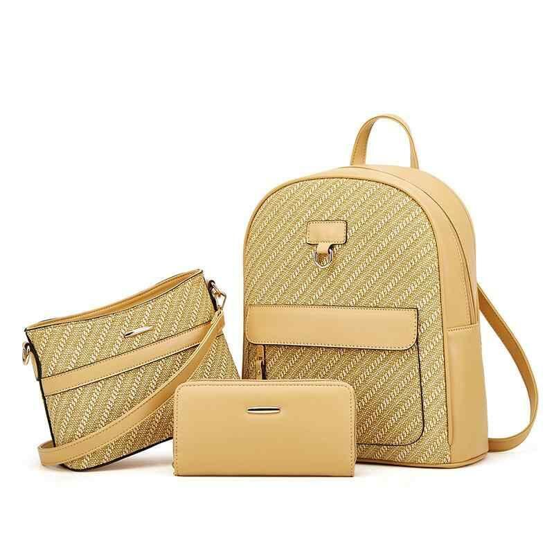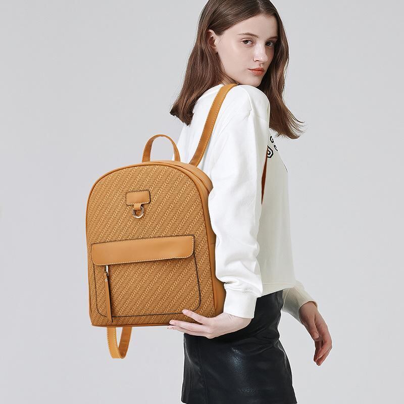 バッグ レディース リュック トート ショルダー 斜め掛け 鞄 PUレザー 編み込み 防水 撥水 耐久性 カジュアル 旅行 普段使い 通勤通学 春夏 黒 緑 青 黄 茶色