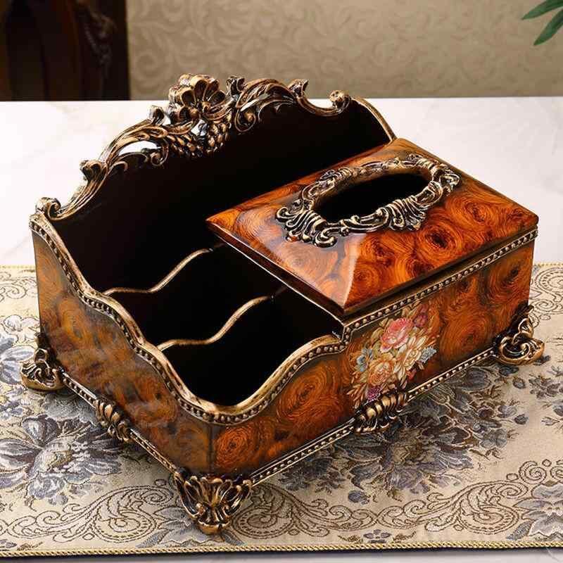 ティッシュケース 大型 多機能 リモコン収納ボックス 樹脂製 ボックスティッシュ対応 防水仕様 ヨーロピアン アメリカン 高級感 上質 エレガント リビング センターテーブル 卓上飾り ブラウン
