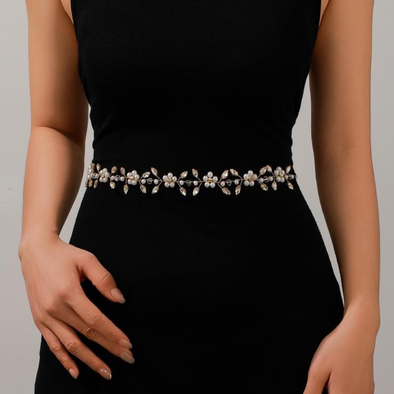 ウエストチェーン レディース 花嫁 ブライダル ウェディング パール ジルコニア ハンドメイド 上品 エレガント ウエストマーク 結婚式 披露宴 ファッション小物