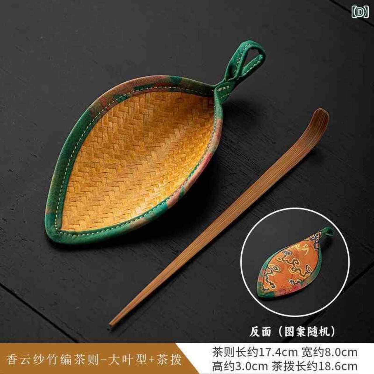 茶道具 新中国風 モダン 和モダン 高級感 手作り 竹編み 漆塗り 藤編み 天然素材 茶則 茶葉匙 茶杓 箕型 リーフ型 茶器 茶会 来客用