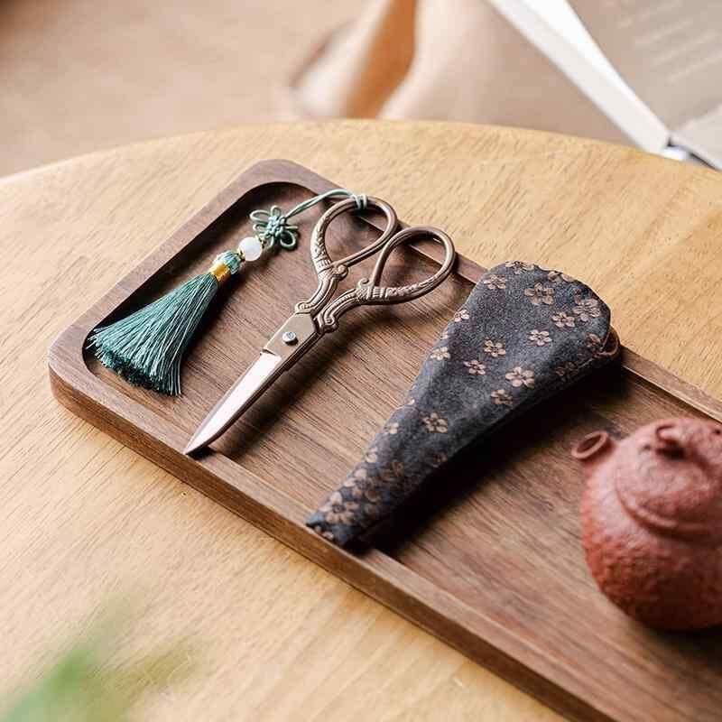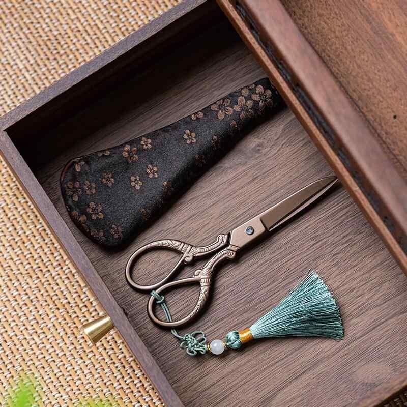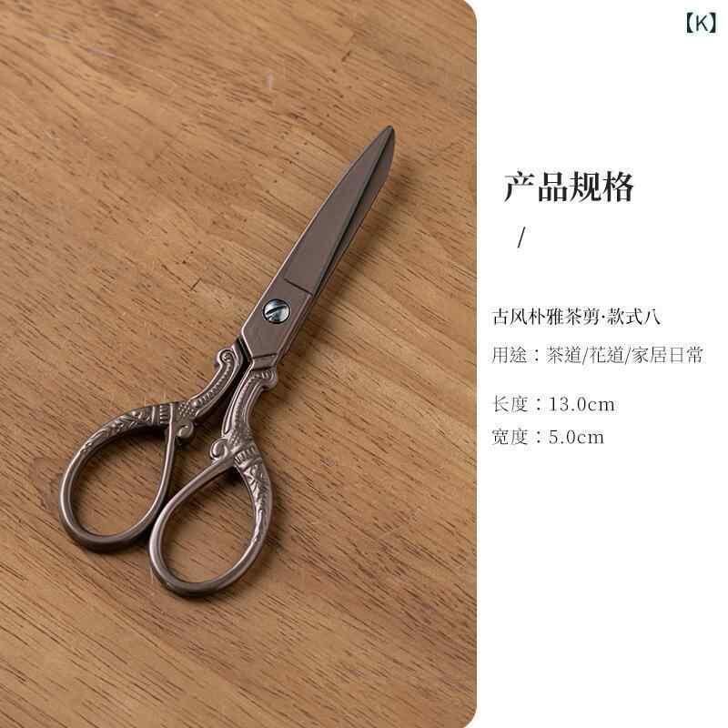 ハサミ 家庭用 茶道用 多機能 小型 コンパクト ステンレス製 工作 手芸 ペーパークラフト 糸切り 茶葉袋開封 中華風 デザイン 錆びにくい 丈夫