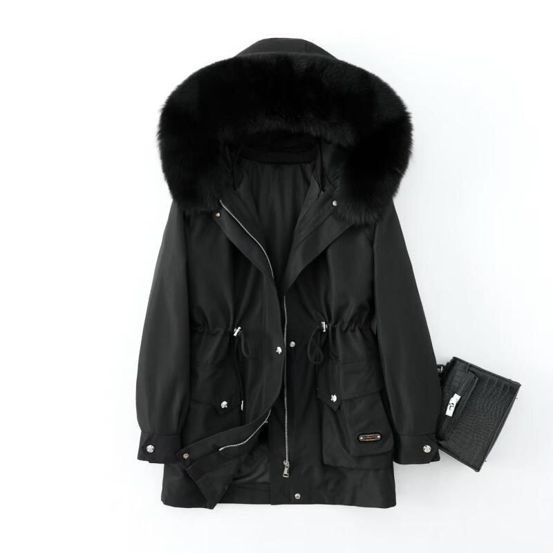ファーコート レディース ミドル丈 フォックスファー襟 ラビットファーライナー 取り外し可能 リアルファー フード付き 秋冬 通勤