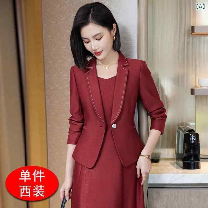 テーラードジャケット レディース ワインレッド ボルドー 無地 長袖 ショート丈 ワンボタン オフィス 通勤 ビジネス フォーマル 秋冬 きれいめ 上品 エレガント 高級感 サテンシフォン ポリエステル イージーケア ポケット付き