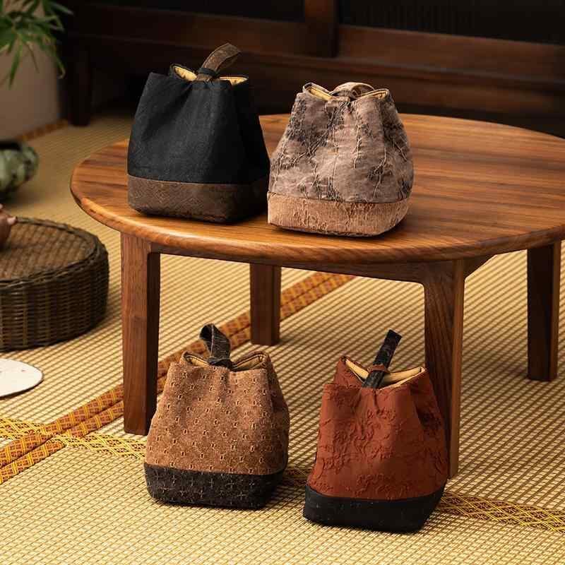 ・カテゴリ: 茶道用品・素材: 布・デザイン: 珈琲色-十字紋、赤色-繁花影、黒色-格子小花、茶色-氷梅ジャカード・スタイル: 新中式・サイズ: 7.5×7.5×10.5cm