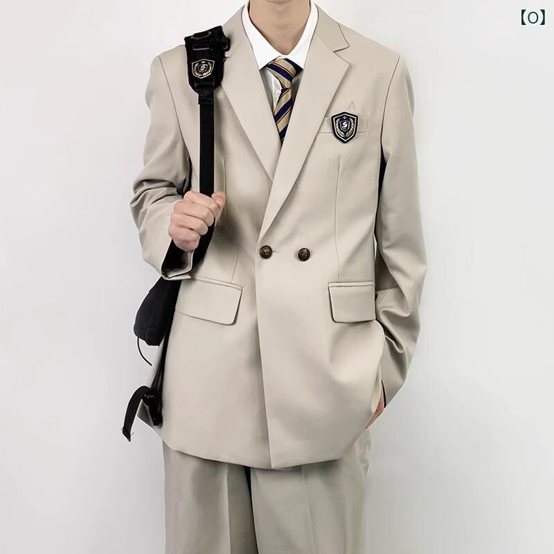 スーツ メンズ 日系制服スタイル シングルボタン カジュアル ライトビジネス リラックスフィット 落ち感 ドレープ レーヨン ベージュ アイボリー ジャケット スラックス セットアップ 春秋