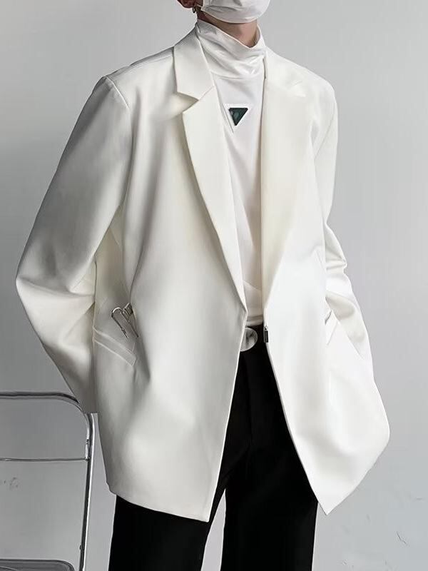ジャケット レディース レトロ ヴィンテージ 黒 ブラック 高級感 デザイン性 個性的 メンズライク オーバーサイズ シングルボタン 春夏 通勤 オフィス ビジネス 普段使い