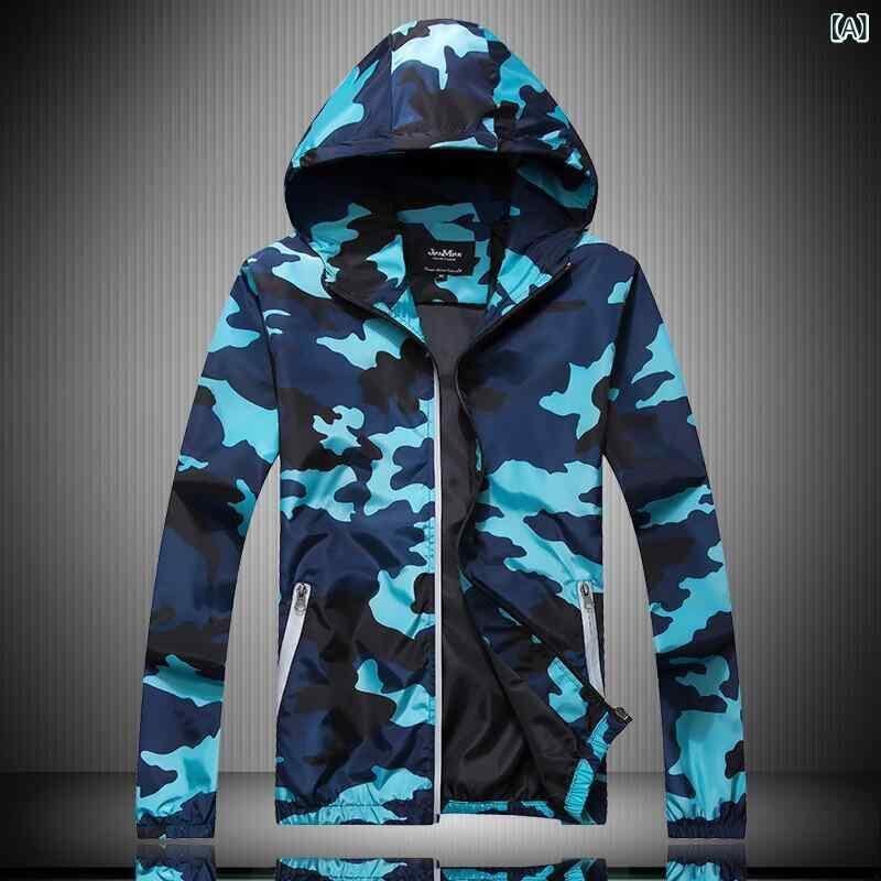 ジャケット 男女兼用 迷彩柄 アウター 上着 カジュアル 普段使い アウトドア スポーツ マウンテンパーカー ウインドブレーカー 防風 フード付き 通気性 ポリエステル 長袖 サイドポケット ネイビー ブラック