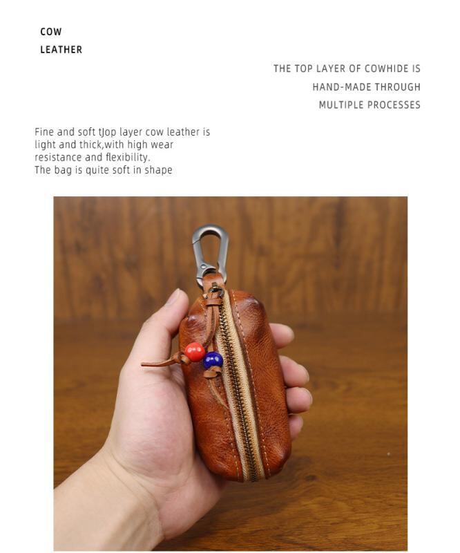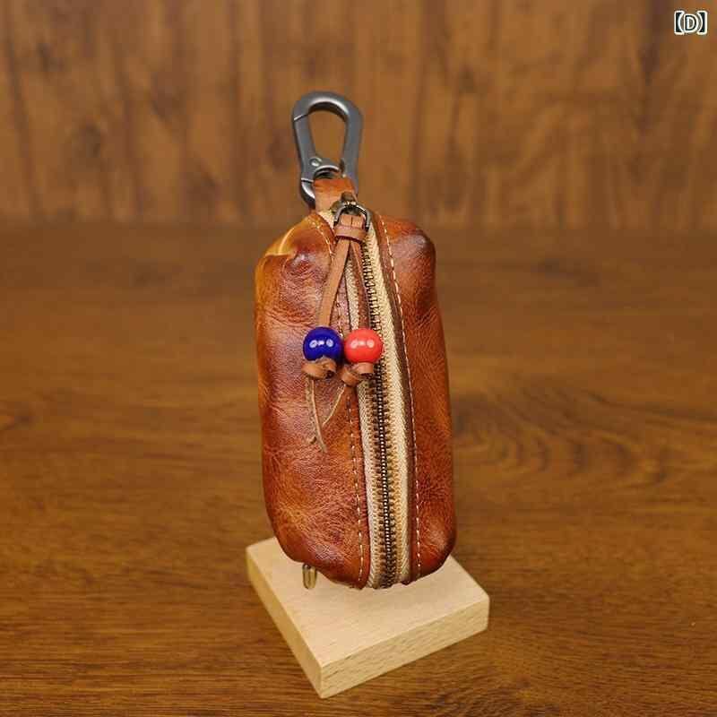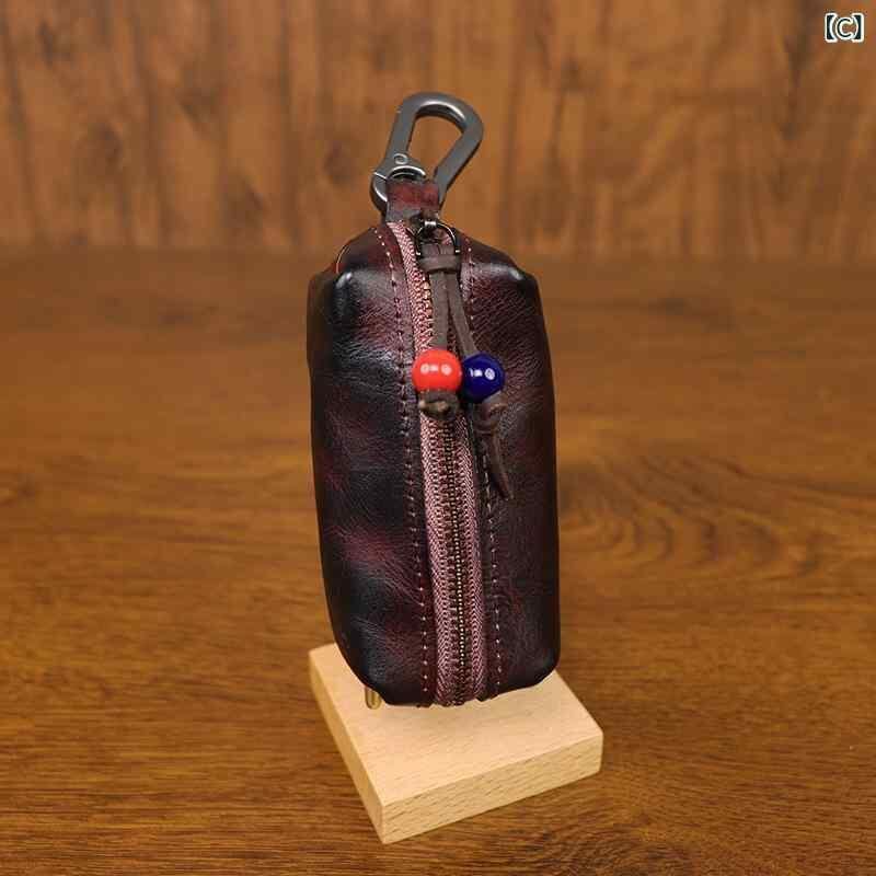 キーケース 男性用 メンズ ユニセックス 本革 牛革 植物タンニンレザー 手染め 擦れ加工 ヴィンテージ風 レトロ アンティーク調 ウエストバッグ 腰掛け ベルトループ カラビナ付き 収納ポーチ 小物入れ 日常使い ブラック レッド イエロー コーヒー