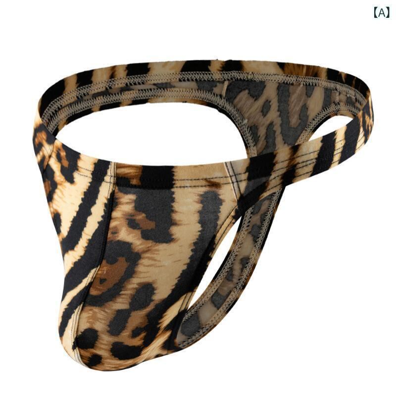 パンツ メンズ 男性用 ヒョウ柄 レオパード柄 アニマル柄 セクシー Tバック T字ショーツ ソング ローライズ 浅め フロント立体ポーチ 通気性 速乾性 ポリエステル アンダーウェア 下着 インナー 紳士