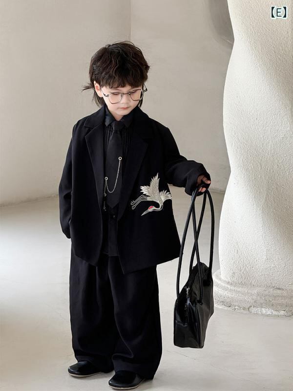 ジャケット 男の子 春夏 刺繍 鶴柄 テーラードカラー 1つボタン カジュアル フォーマル スーツ セットアップ 入園式 卒園式 発表会 結婚式 七五三 ポリエステル