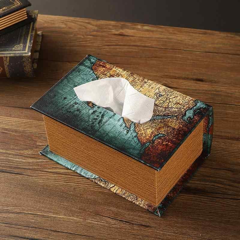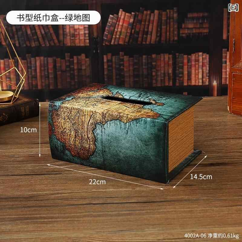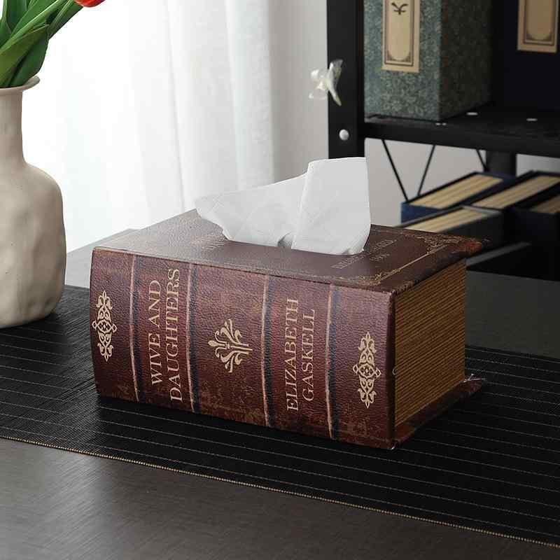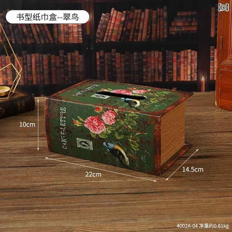 ティッシュケース ブック型 木製 ヨーロピアン レトロ アンティーク調 おしゃれ かわいい 卓上 デスク リビング ダイニング 玄関 寝室 家庭用 多機能 デザイン 丈夫