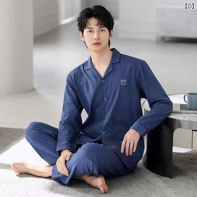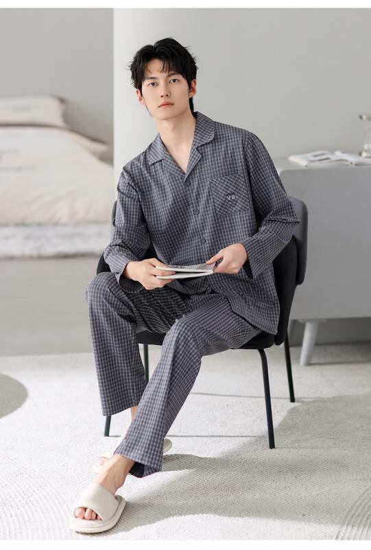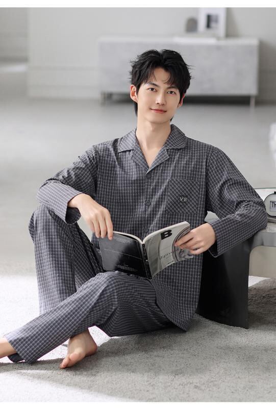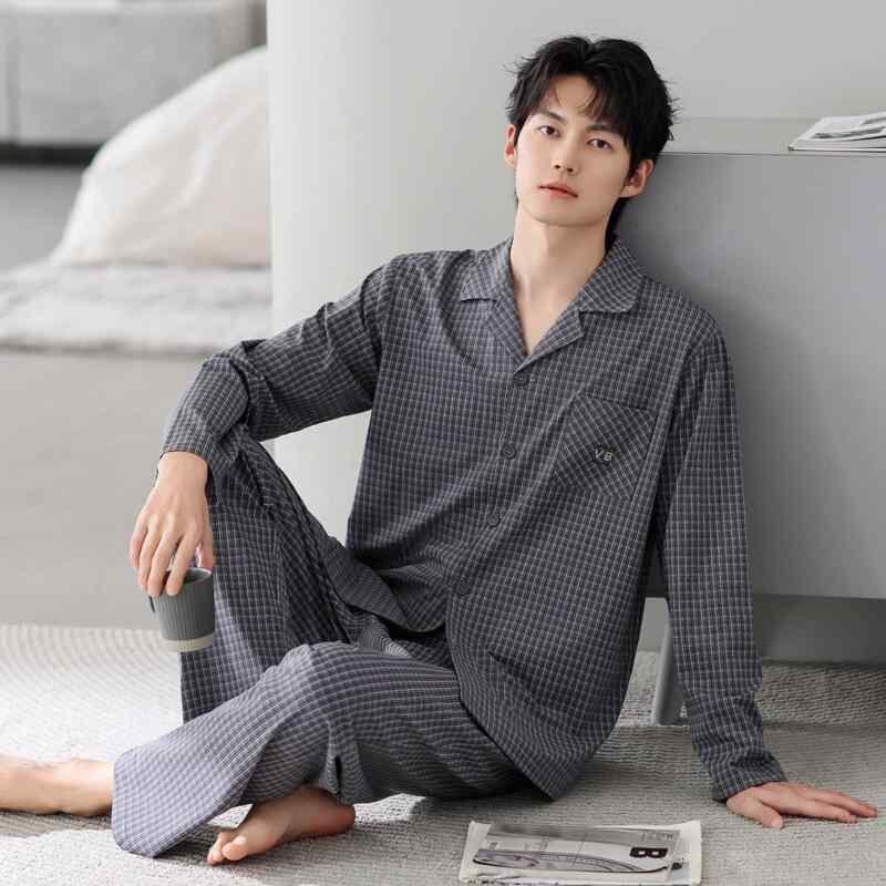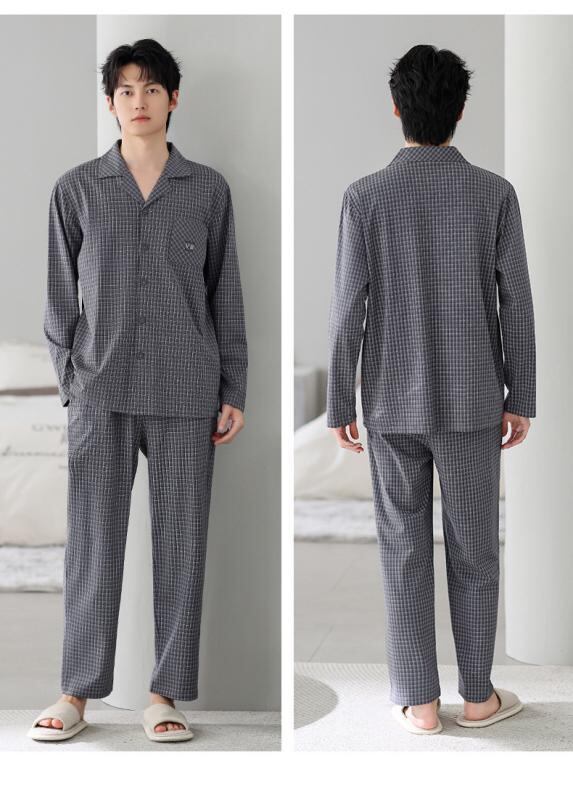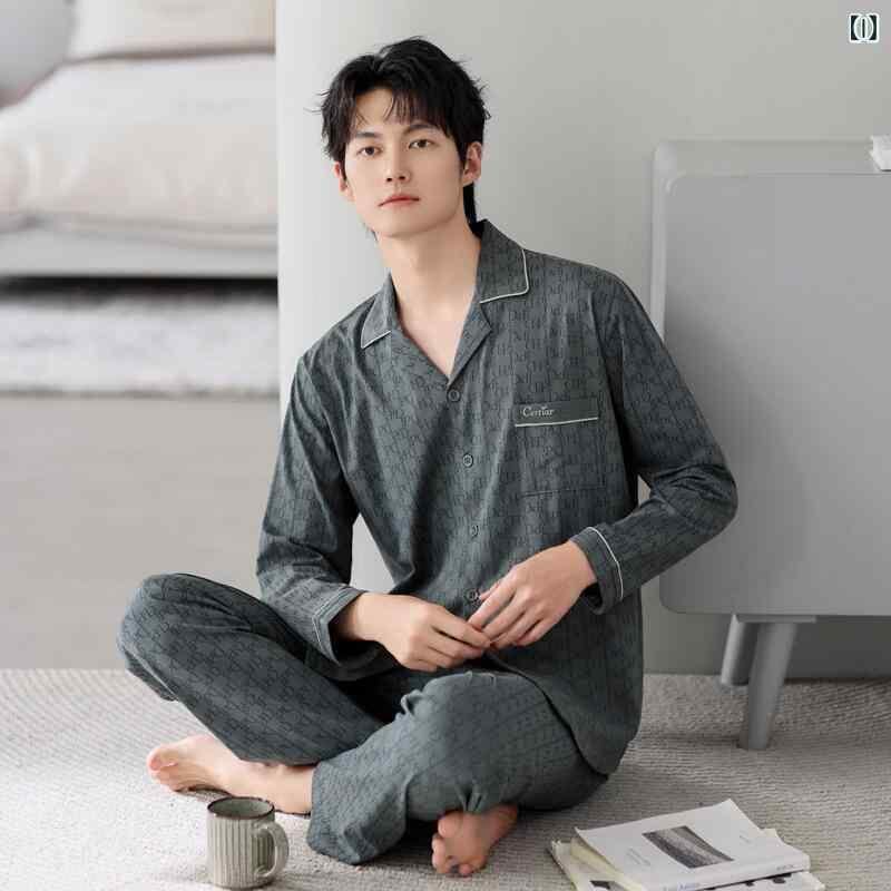 パジャマ メンズ 男性用 春秋 中年 純綿 コットン 長袖 開襟 前開き セットアップ 上下セット ゆったり 大きいサイズ 伸縮性 通気性 快適 カジュアル ルームウェア 部屋着 睡眠用 長ズボン ワンマイルウェア