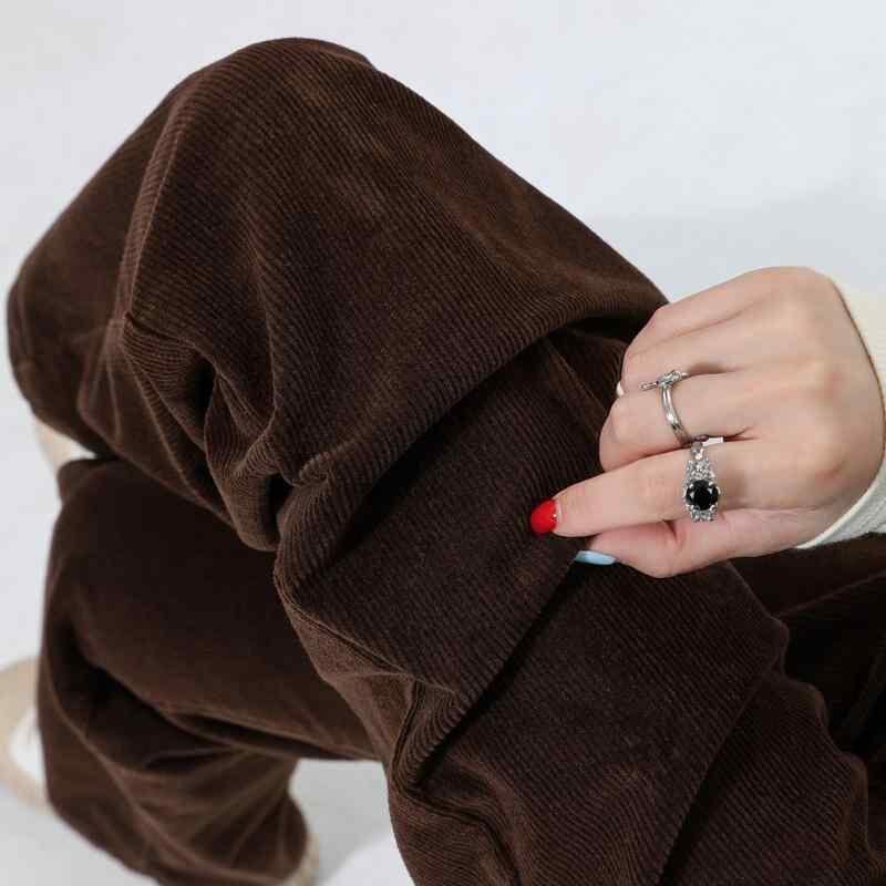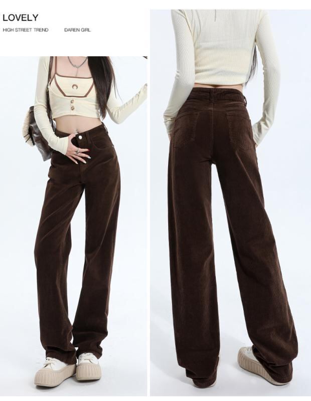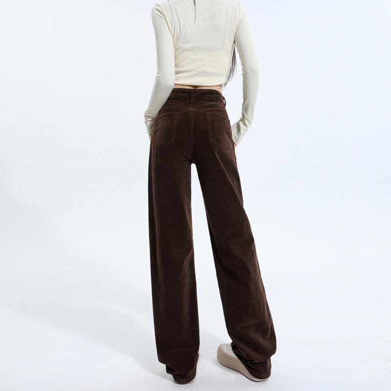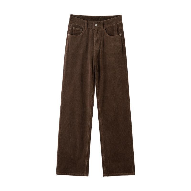 パンツ レディース レトロ ヴィンテージ ハイウエスト コーデュロイ ロング丈 ストレートシルエット カジュアル 普段使い グラスグリーン 緑系 秋冬 ポケット付き