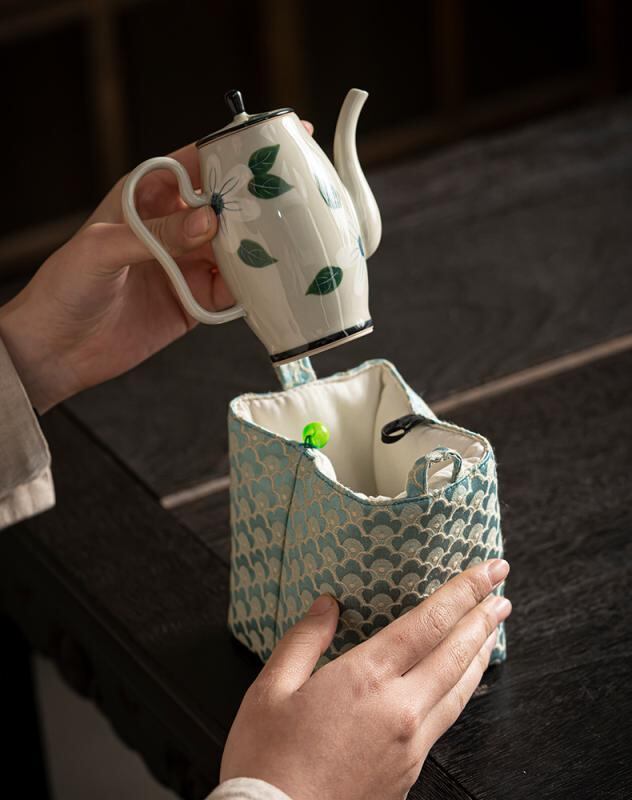 茶道具 収納ポーチ 手作り 大型 布製 携帯用 急須 蓋碗 茶杯 個人用カップ レトロ 和風 トラベルバッグ 鱗柄 祥雲柄 グリーン ピンク ブルー