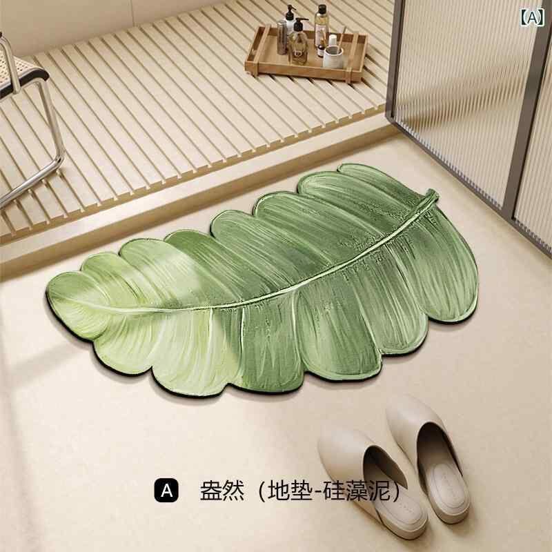 バスマット SNS風 ボタニカル柄 珪藻土 吸水速乾 変形 楕円形 洗える リビング 浴室 洗面所 玄関 フロアマット 家庭用 多用途