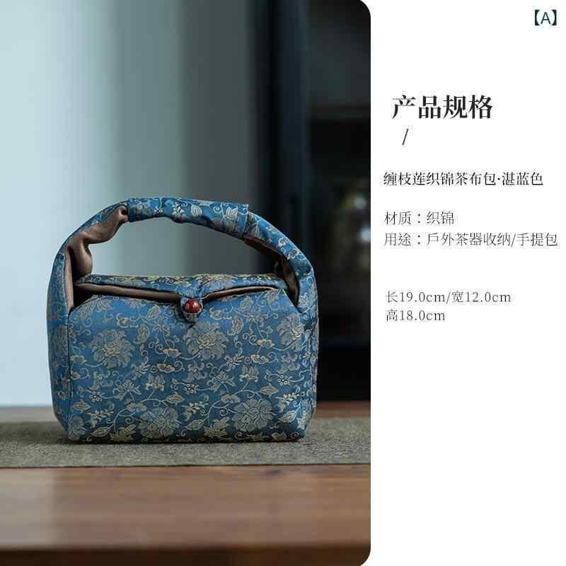 バッグ 新中式 レトロ 錦織 唐草模様 茶道具収納 手提げ 携帯用ポーチ 旅行 お出かけ コンパクト オーガナイザー 湛青色 銀灰色