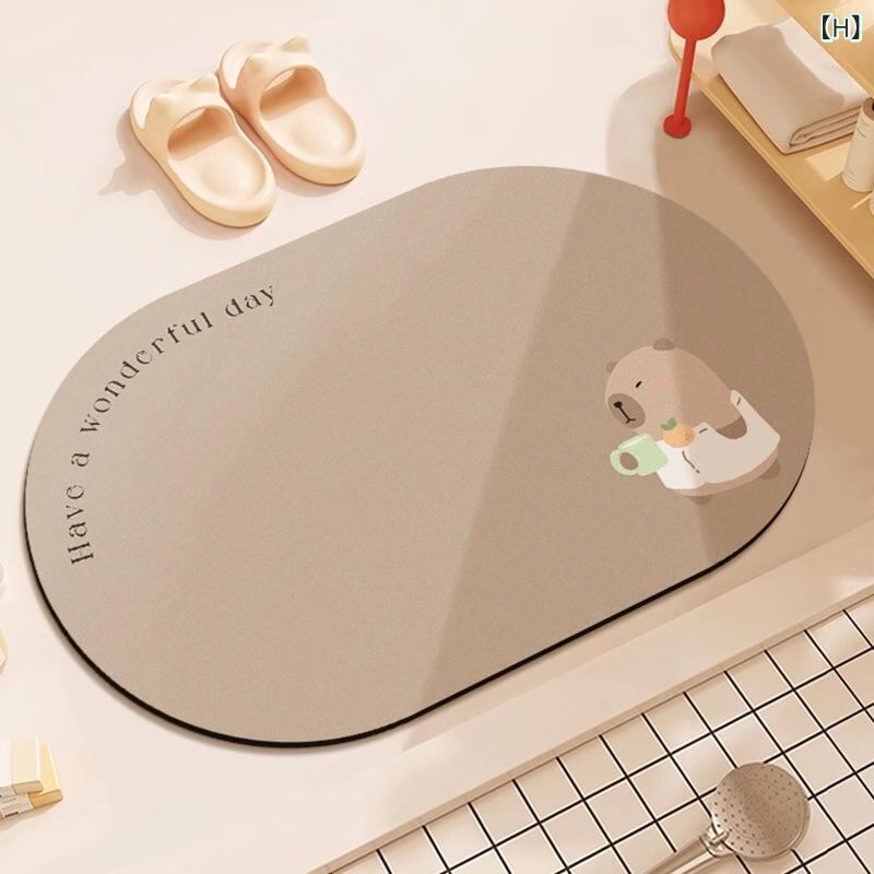バスマット 珪藻土 吸水 速乾 汚れにくい 滑り止め ノンスリップ加工 カートゥーン アニメ かわいい カピバラ ワニ アニマル柄 プリント 家庭用 浴室 脱衣所 玄関 フロアマット 変形