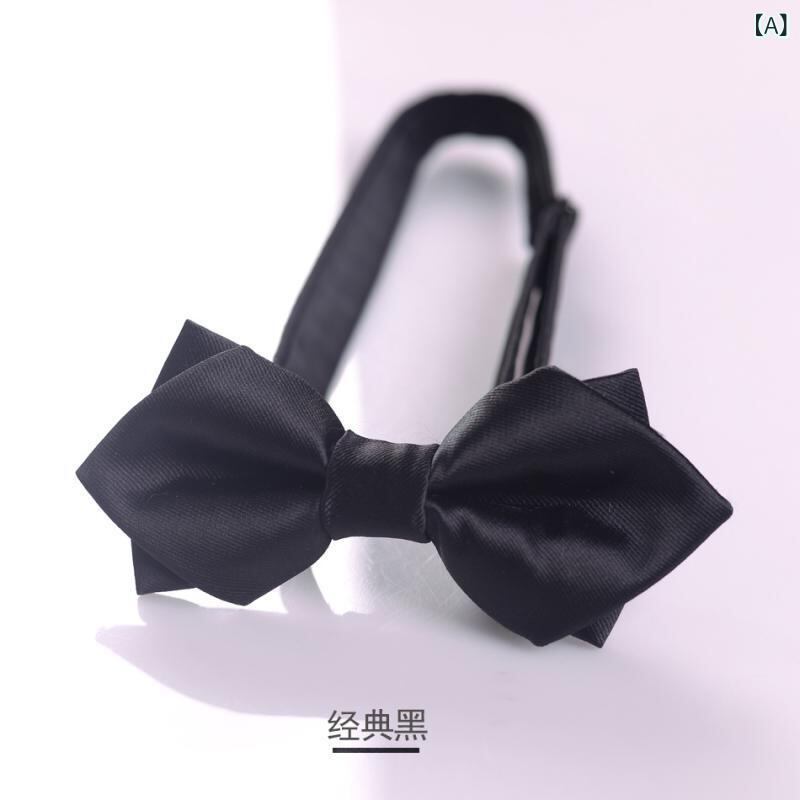 蝶ネクタイ メンズ 男性用 ダブルレイヤー 菱形 無地 ポリエステル シルク調 光沢 結婚式 ブライダル 新郎 アッシャー ビジネス パーティ フォーマル 赤 黒 ワインレッド シャンパン ネイビー ホワイト シルバー