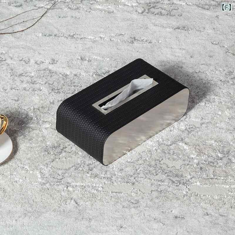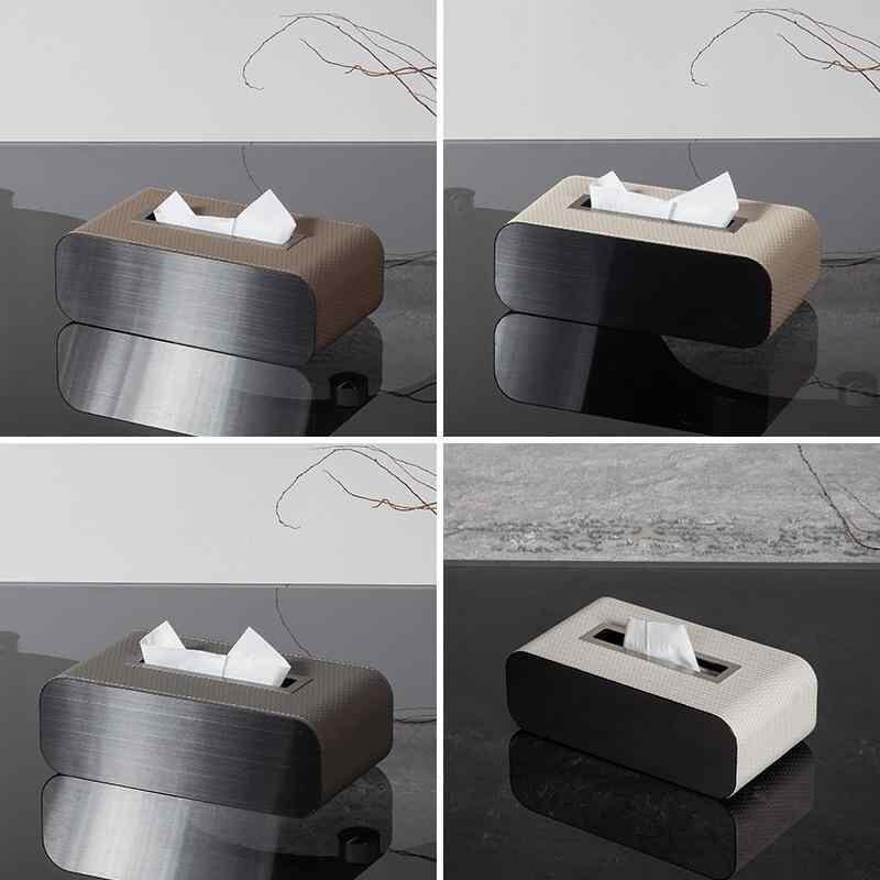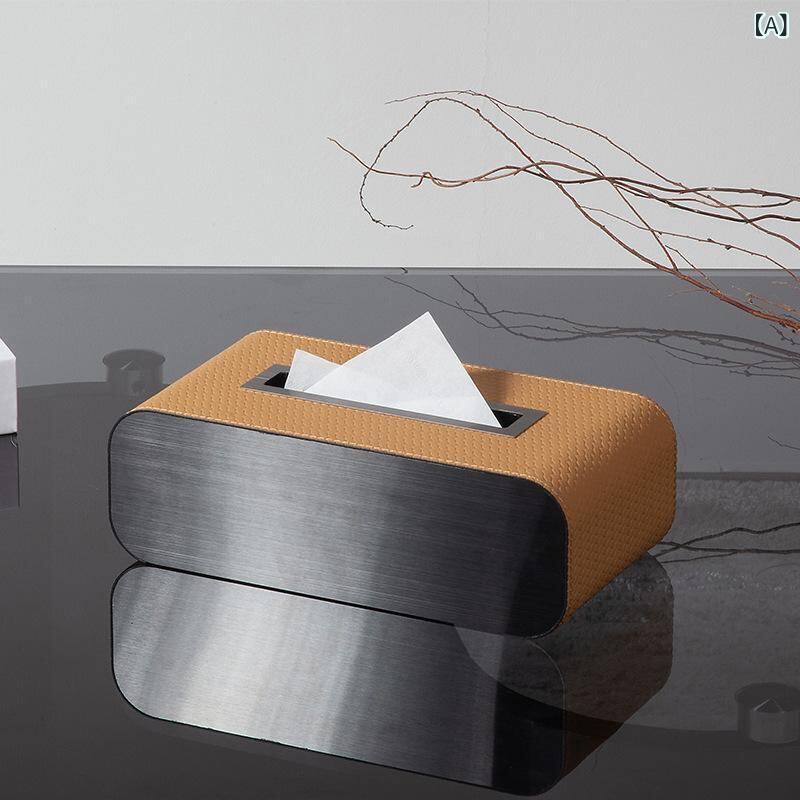 ティッシュケース フェイクレザー 合皮 メタル モダン シンプル スタイリッシュ 北欧 おしゃれ リビング 卓上 デスク オフィス インテリア 飾り 洗面所 車載 多機能 多用途 収納ボックス