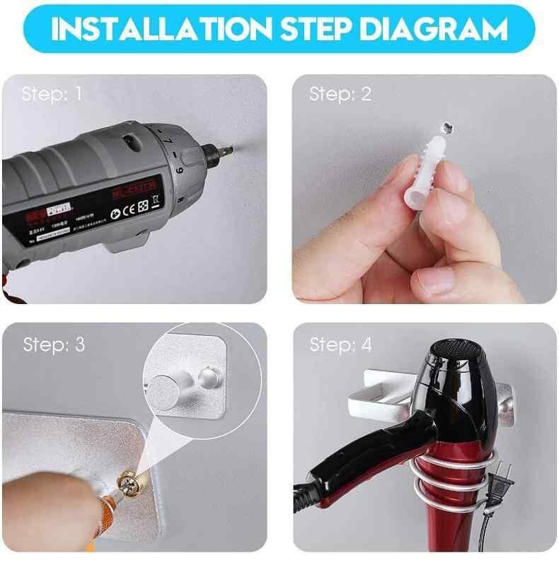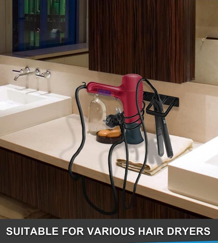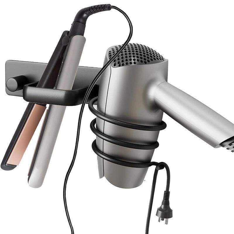 ドライヤー ホルダー 壁掛け式 バスルーム 洗面所 ヘアドライヤー スタンド ストレート カール ヘアアイロン 収納ラック アルミニウム合金製 多機能 整理整頓 ブラック シルバー