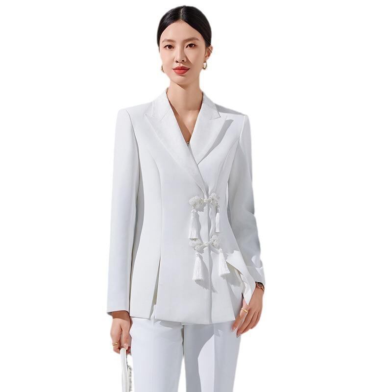 ジャケット レディース ネオチャイナ風 セットアップ 高級感 チャイナボタン ビジネス オフィス フォーマル 通勤 ポリエステル ブラック ホワイト 秋冬
