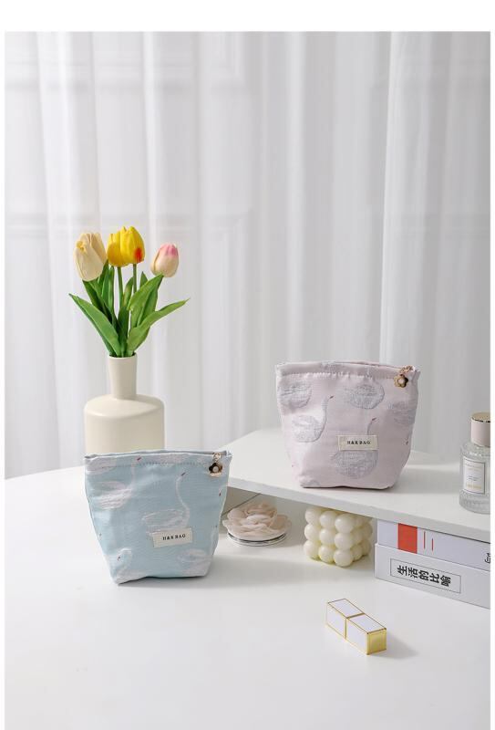 化粧ポーチ レディース スワン ジャカード織り柄 かわいい おしゃれ リップポーチ 小銭入れ カード入れ バッグインバッグ 普段使い キャンバス生地 花柄 清楚