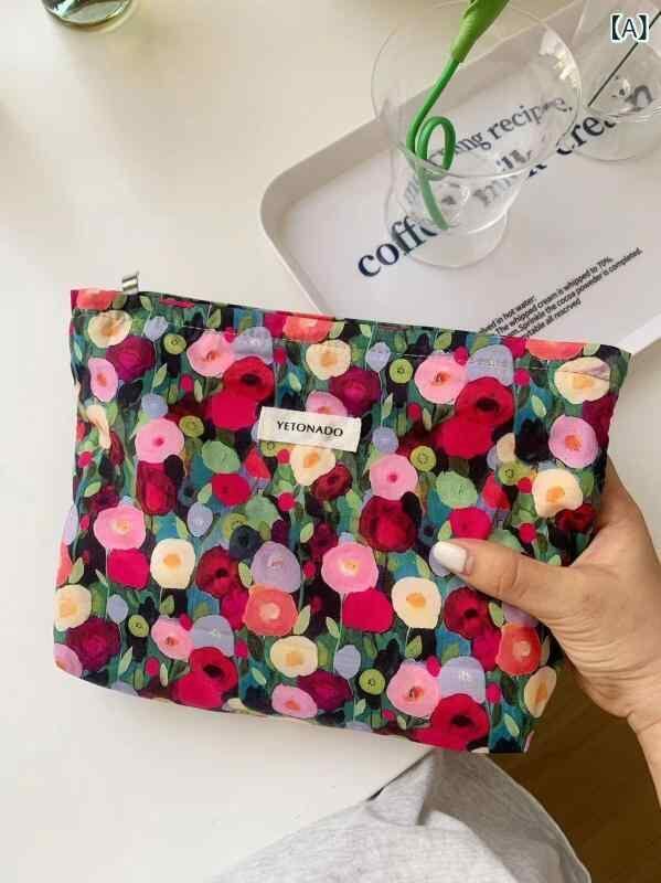 メイクポーチ レディース 女性用 コットン 綿 小花柄 フラワー柄 大容量 化粧品収納 トラベルバッグ 整理ケース 旅行 出張 普段使い 持ち運び便利 洗面用品 インナーケース 春夏 かわいい フェミニン