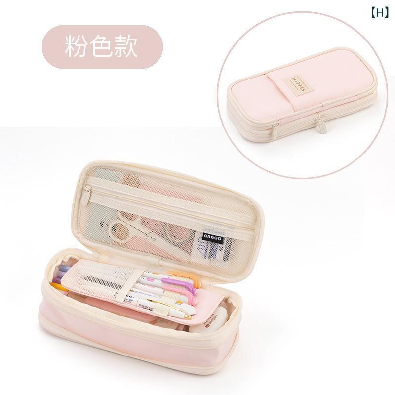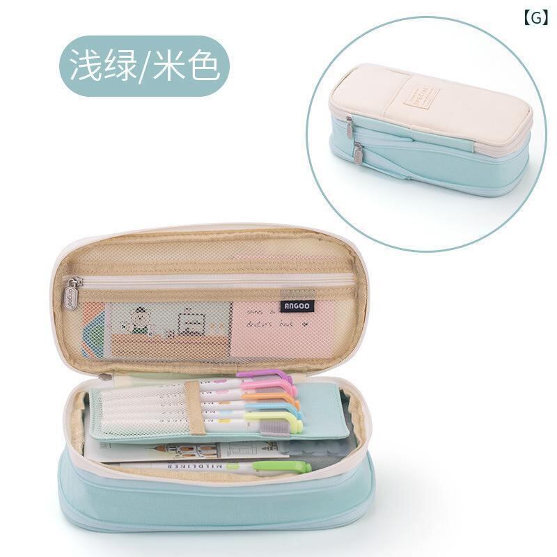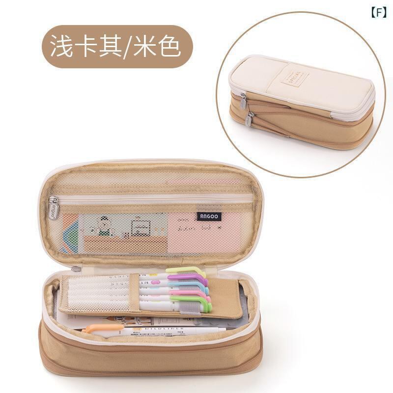 ペンケース 高校生 学生 男女兼用 帆布 キャンバス 多層 伸縮 スタンド機能 大容量 韓国風 シンプル マカロンカラー 切り替え 筆記用具 小物入れ