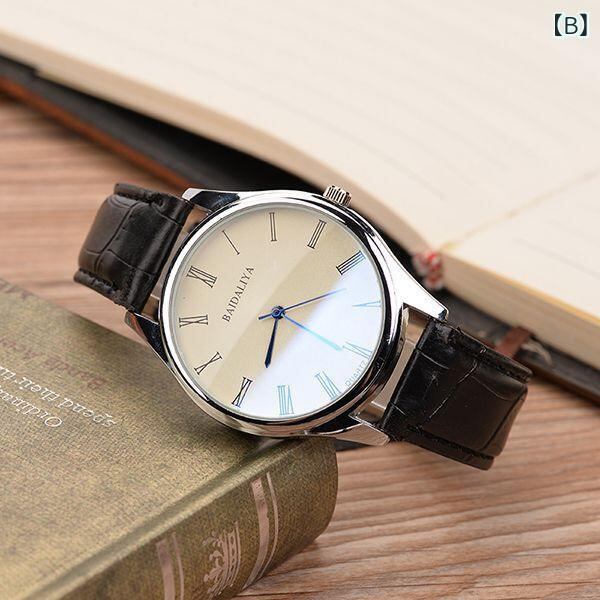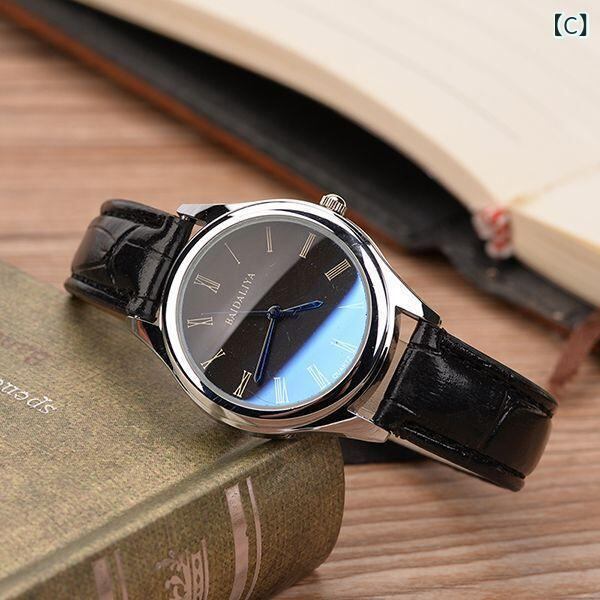 腕時計 男女兼用 ペア ウォッチ メンズ レディース 学生 シンプル おしゃれ クォーツ 本革 レザー 丸型 ラウンドフェイス ブラック ホワイト