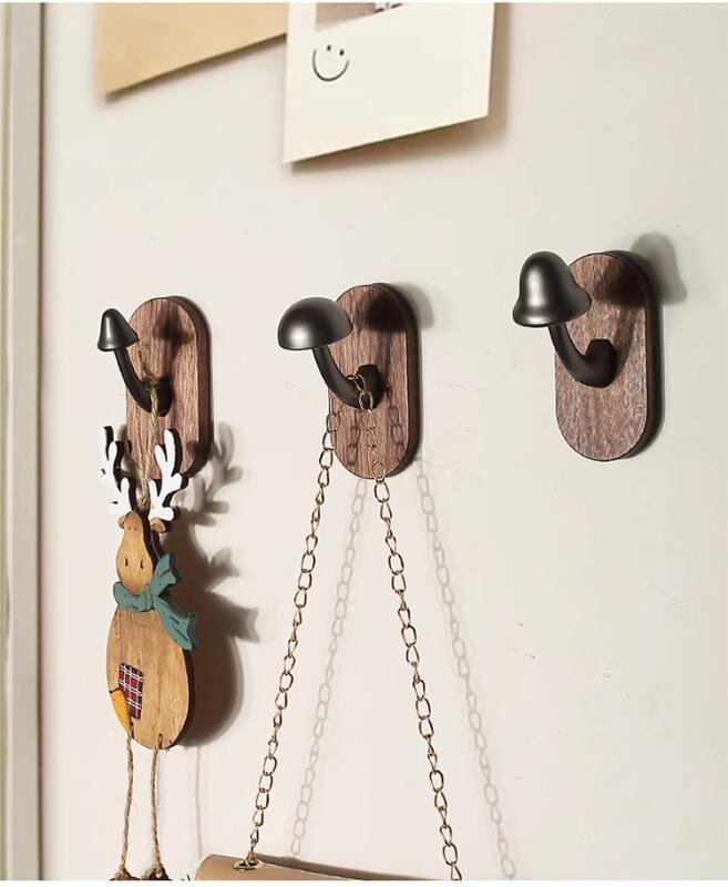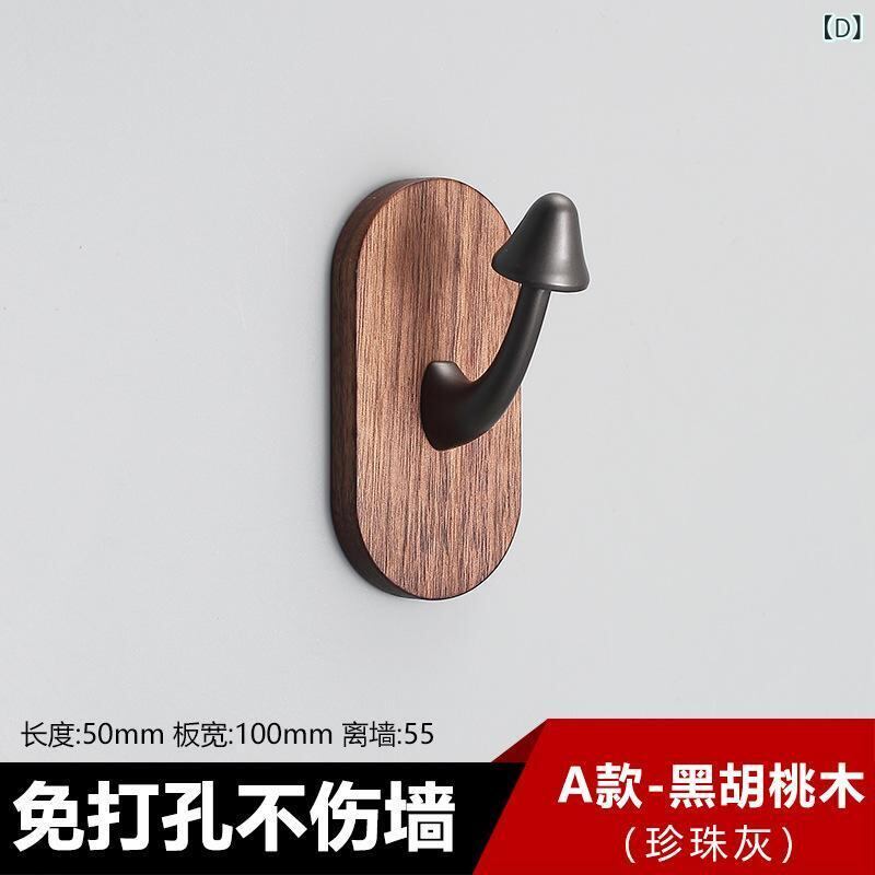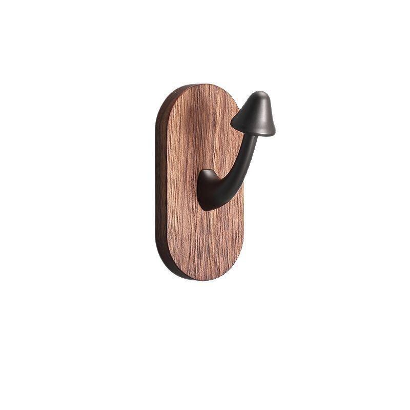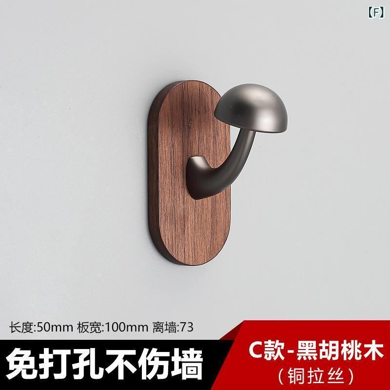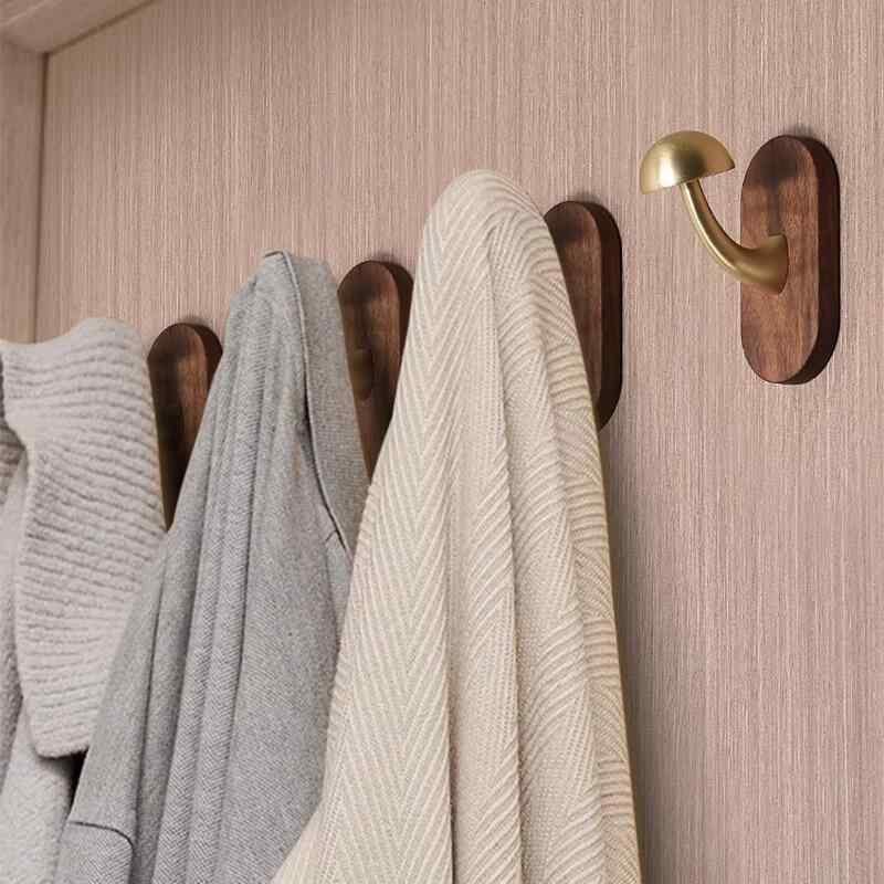 ウォールハンガー 無垢材 キノコ型 多機能 コートハンガー 洋服掛け 帽子掛け キーフック 玄関収納 壁掛け 穴開け不要 粘着式 ウォールナット 天然木 真鍮 モダン シンプル 北欧風