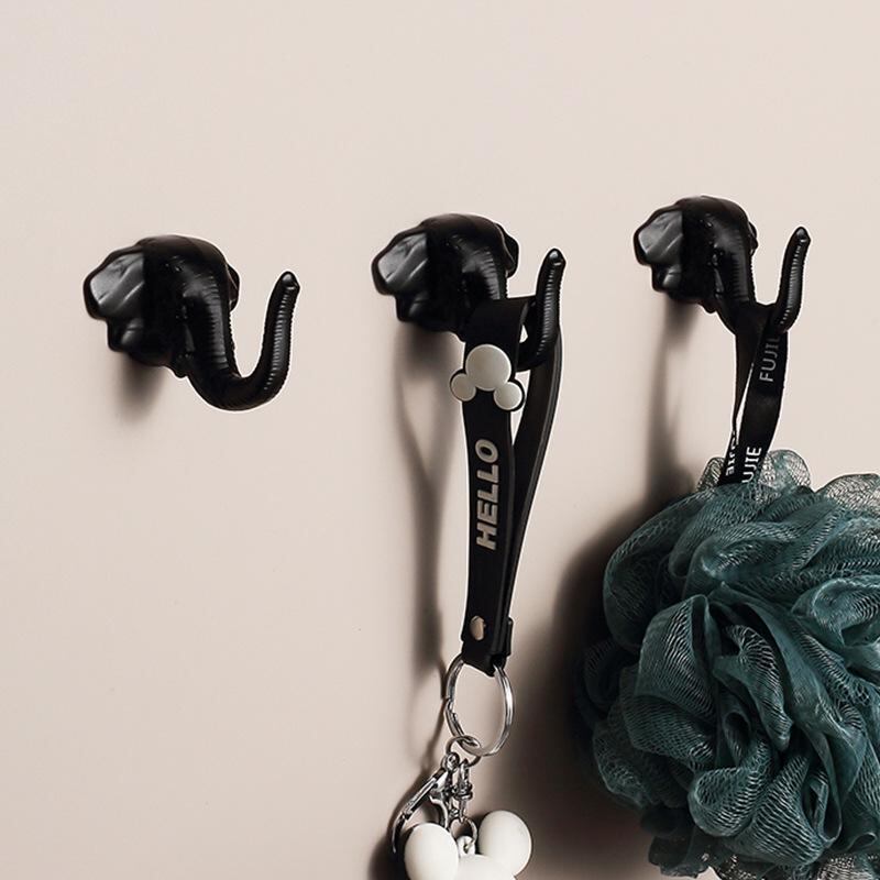 壁掛けフック 玄関 エントランス クローゼット ハンガー シングル 象デザイン 洋服掛け コート掛け 高級感 モダン スタイリッシュ リビング 衣類収納 ブラック