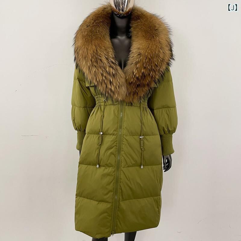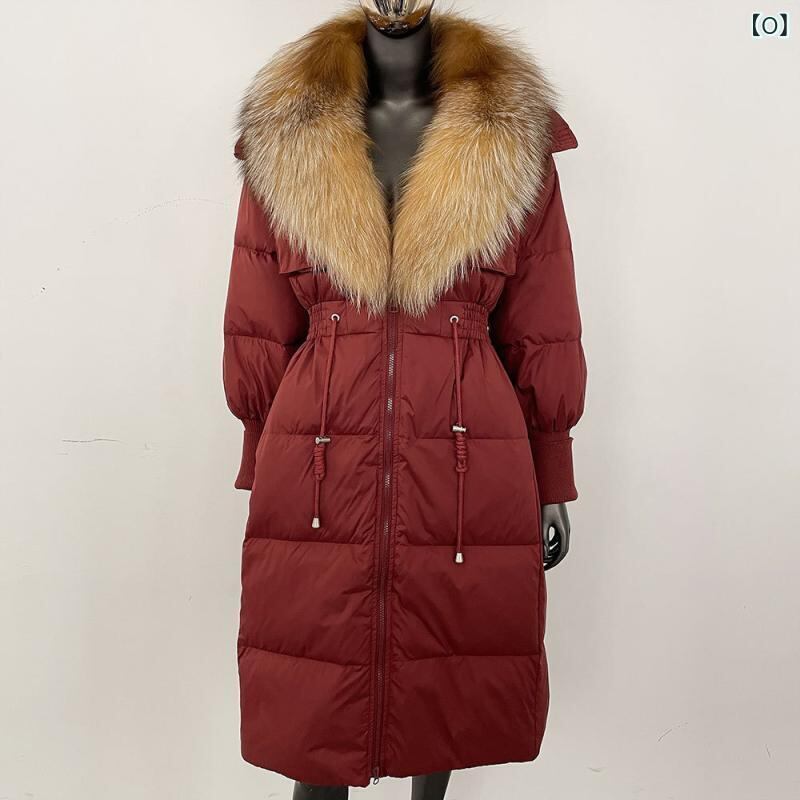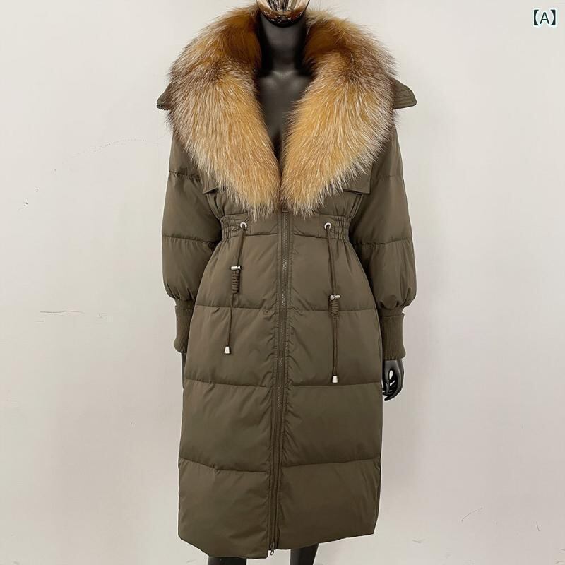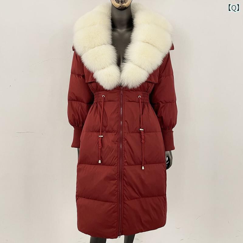 ダウンコート レディース ロング丈 膝下丈 ウエストシェイプ 着痩せ効果 ボリュームフォックスファー襟 防寒 保温 あったか ホワイトダックダウン 上品 エレガント 通勤 秋冬