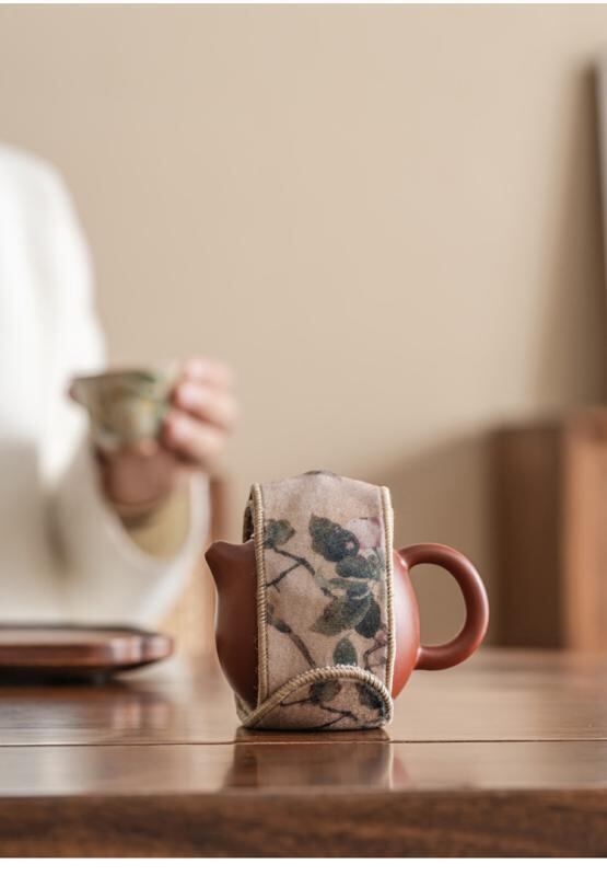 茶器 スエード調 保護バンド 急須 蓋碗 茶道具用 布製 クッション 衝撃吸収 携帯 旅行 アウトドア マジックテープ 面ファスナー 収納ポーチ