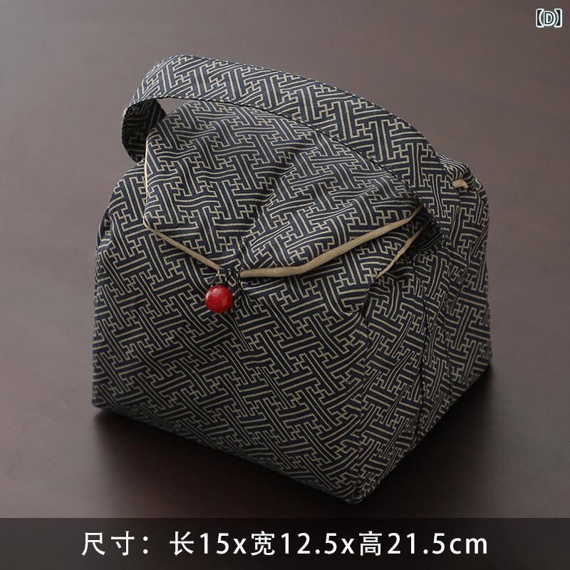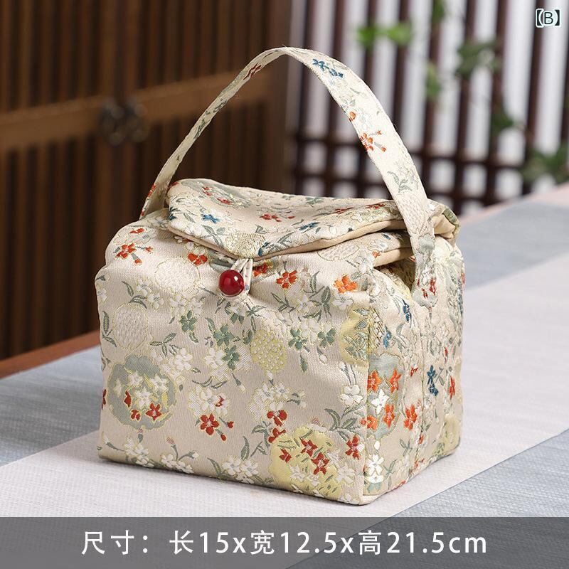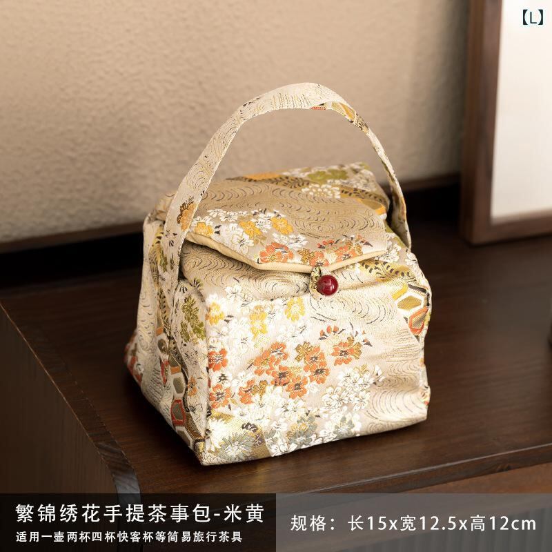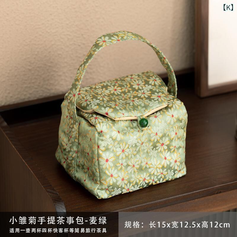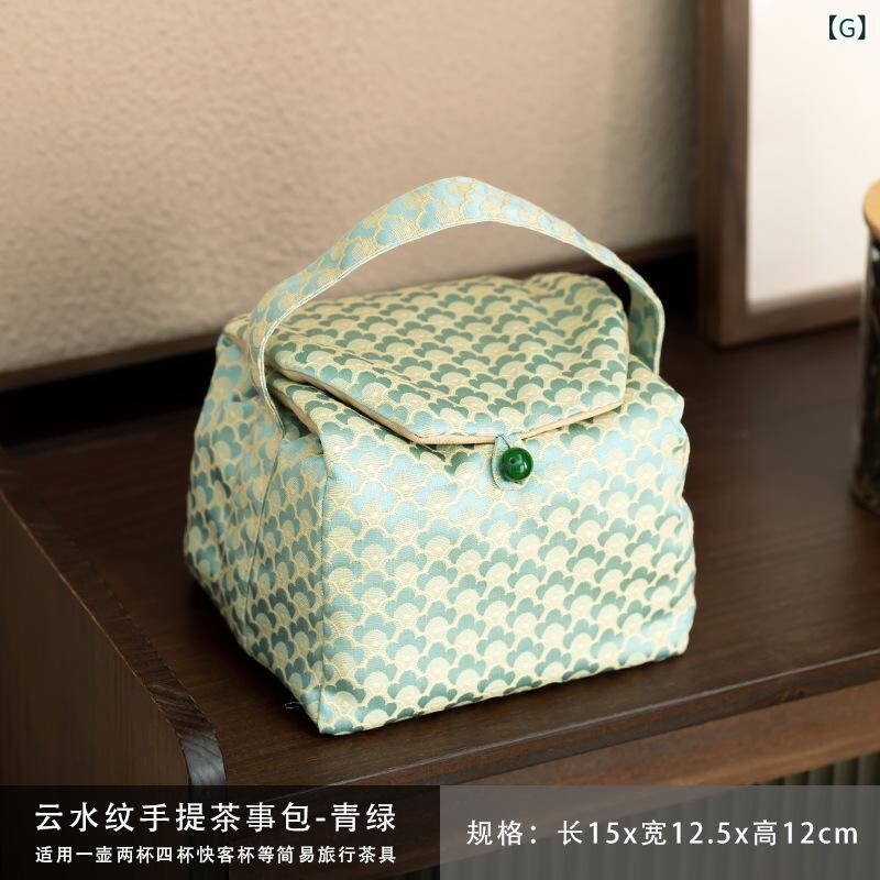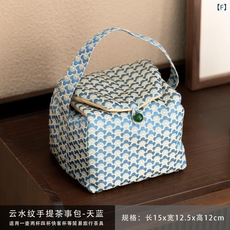 トラベルポーチ 茶道具収納 錦織り 布製 中国風 厚手 携帯用 旅行 アウトドア 手提げ 雲水柄 デイジー柄 竹柄 刺繍入り 茶道具ケース 持ち運び