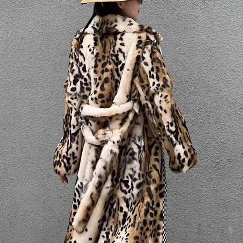 ファーコート レディース ラビットファー ヒョウ柄 レオパード柄 ロング丈 ゆったり オーバーサイズ 上品 エレガント きれいめ 通勤 お出かけ カジュアルスタイル 秋冬 防寒 アウター 長袖