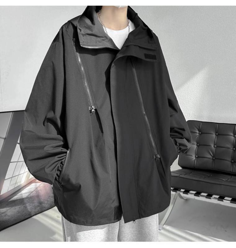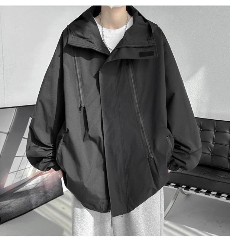マウンテンパーカー メンズ 男性用 シンプル フード付き 撥水 防風 防汚 マルチジップ アウトドア カジュアル ジャケット ブルゾン ゆったり ルーズフィット ポリエステル 春秋 通気性