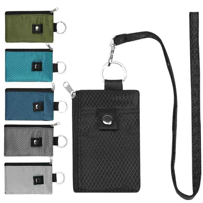 小銭入れ ユニセックス ミニ財布 ウォレット 軽量 薄型 ポリエステル素材 多機能 チェック柄 カードケース カード入れ キーホルダー キーチェーン RFIDスキミング防止 コンパクト ネックストラップ 普段使い