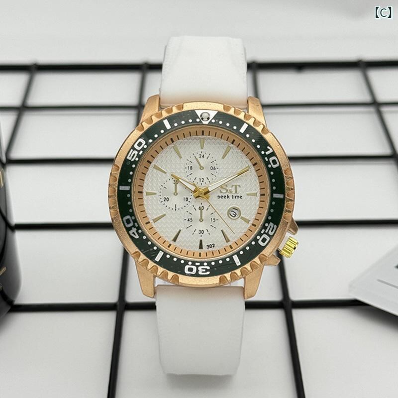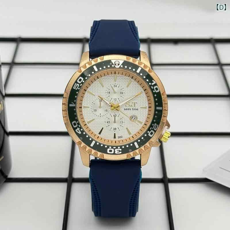 腕時計 メンズ 男性用 ウォッチ ビジネス カジュアル おしゃれ レトロ クラシック クォーツ カレンダー機能 シリコンバンド ラウンドフェイス ブラック ブルー ホワイト