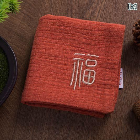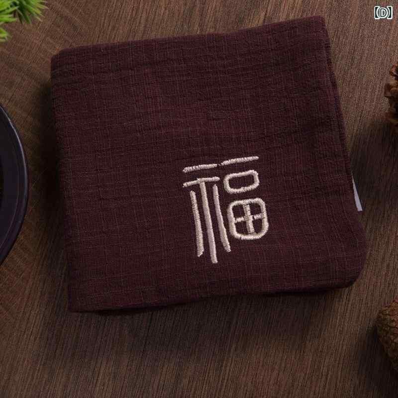 茶巾 コットン 綿100% 上質 厚手 吸水性 速乾 ダブル 刺繍 中華風 オリエンタル ティータイムクロス 茶器 茶台 ハンドクロス 洗顔クロス ミニクロス 多目的 正方形