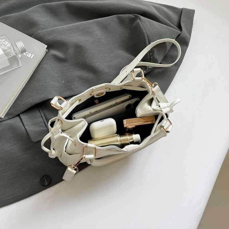 トートバッグ レディース フレンチ シンプル レトロ 巾着デザイン 大容量 ショルダーバッグ 合皮 通勤 旅行 デイリーユース 横型 スクエア クロスボディバッグ 春夏