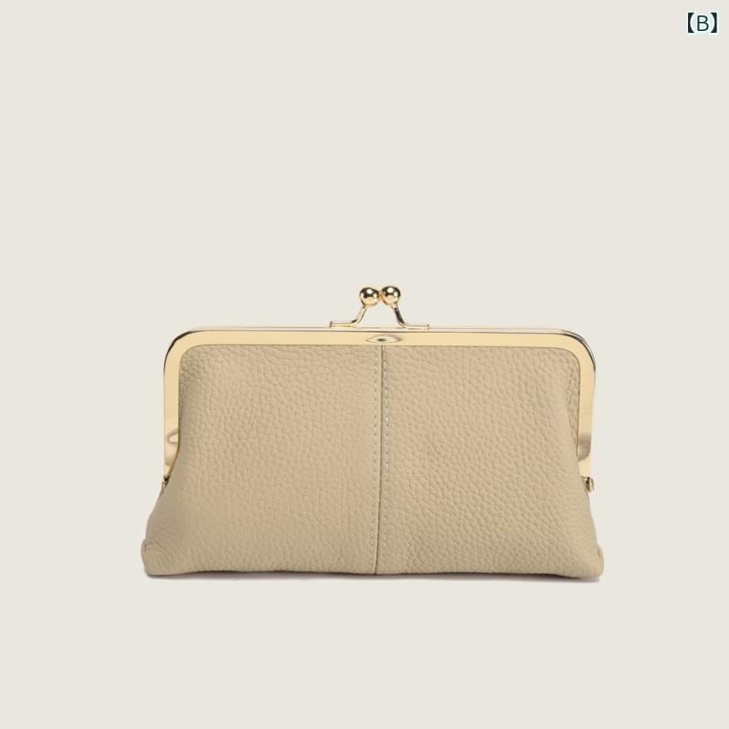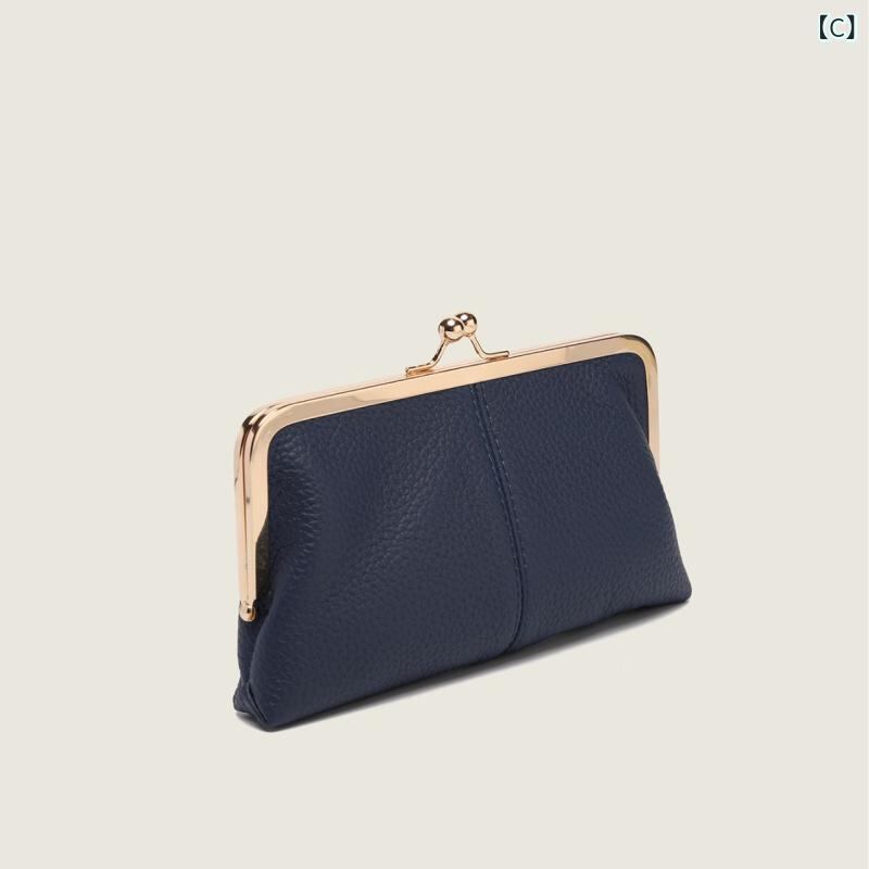 長財布 レディース 本革 レザー シンプル 無地 がま口 高級感 大容量 クラッチ コインケース 普段使い デイリーユース