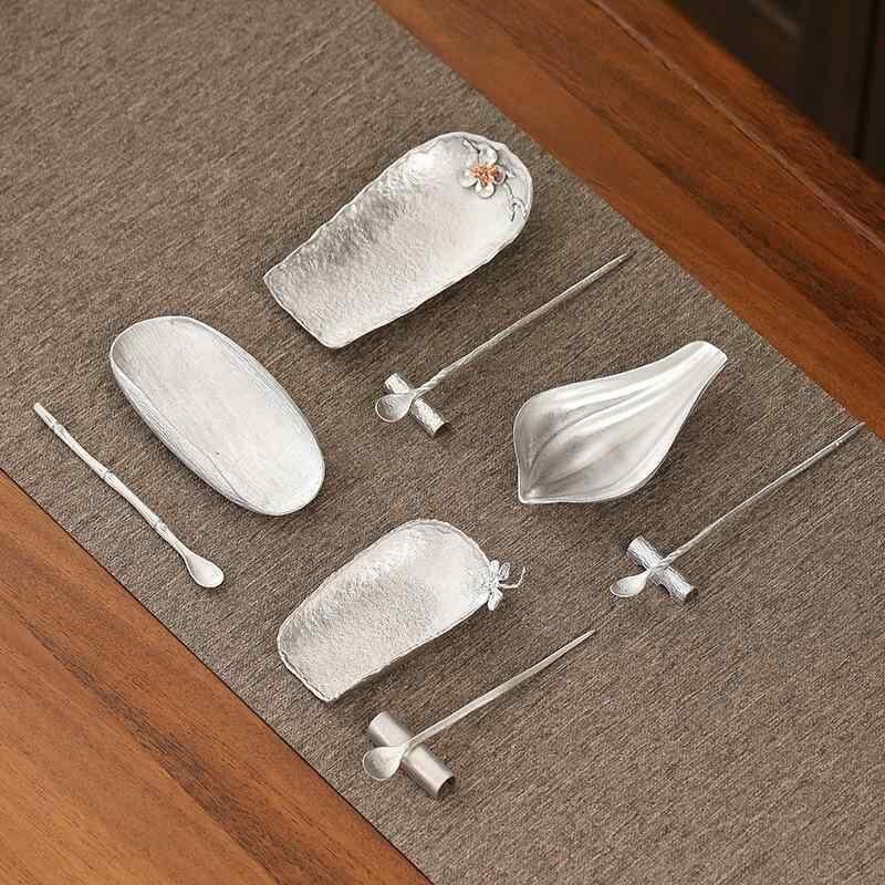 茶道具 錫製 蓮弁模様 茶葉鑑賞用 茶荷 熟成茶則 茶匙 3点セット 手作り ハンドメイド 禅風 和モダン 功夫茶器 上品 高級感 光沢感 お茶席 おもてなし用