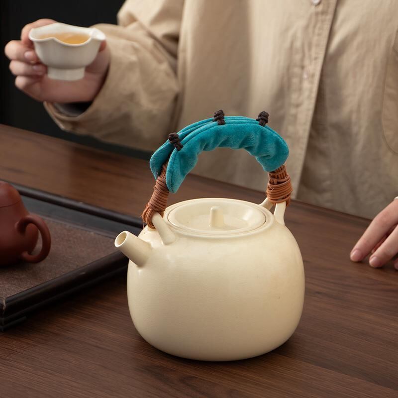 茶道小物 鉄瓶 銀壺 持ち手 提梁 カバー やけど防止 断熱 保温 綿麻 布製 盤扣 新中式 和モダン ティーポット ケトル ハンドル保護 アイボリー ブラック イエロー グリーン ブルー 鍋敷き ティーマット おしゃれ 茶器
