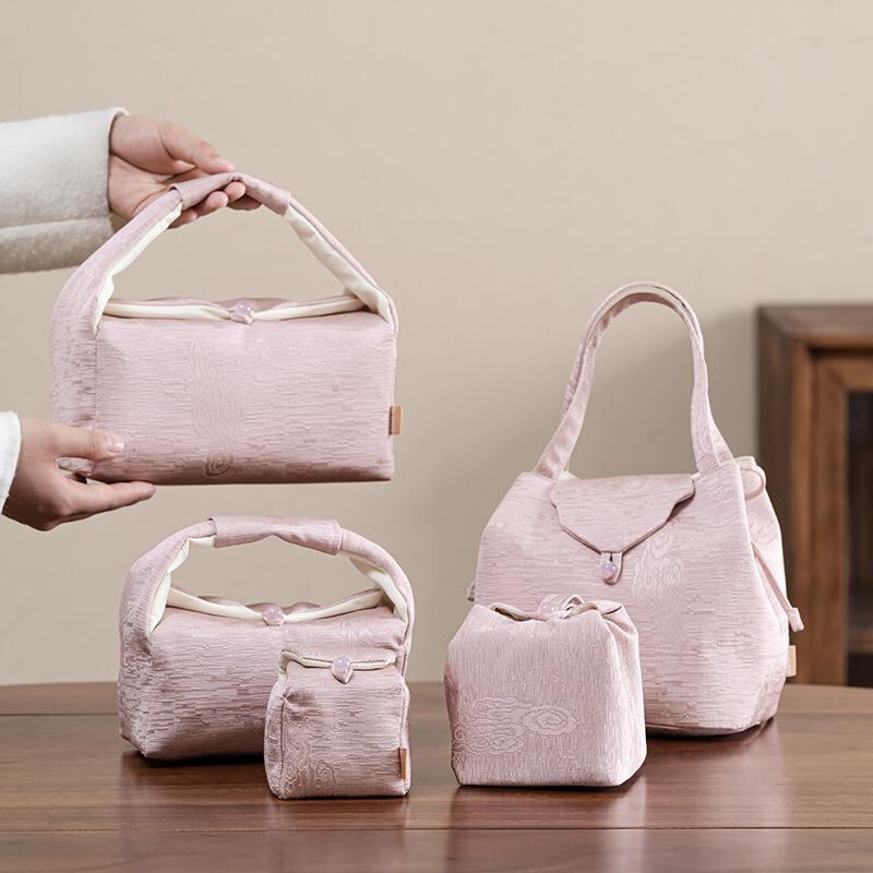 茶器セット 旅行用 織錦刺繡 収納ケース 祥雲柄 携帯 ポータブル 紅茶 日本茶 中国茶 お茶道具 アウトドア 布製 一茶壺二杯 新中式 コンパクト おしゃれ