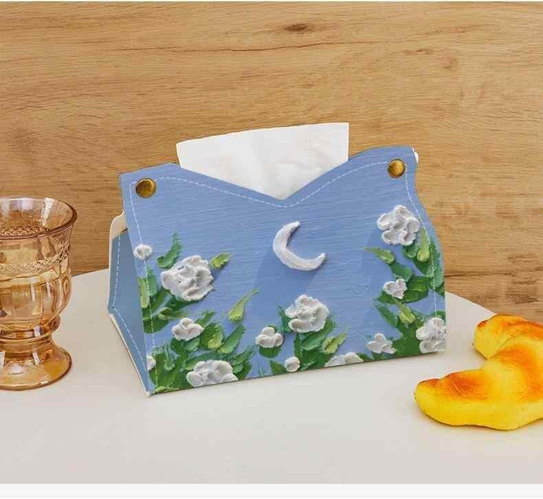 ティッシュケース 革製 レザー おしゃれ かわいい カントリー調 チューリップ柄 油絵風 車載用 リビング ダイニング デスク 卓上 防水 多機能 収納 インテリア雑貨