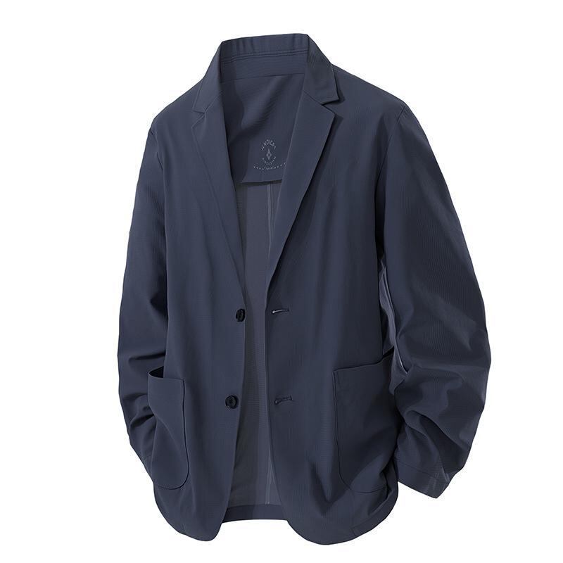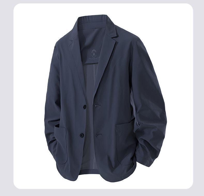 ・カテゴリ: カジュアルジャケット・スタイル: 韓国ファッション・対象: 若年層、大人・性別: メンズ・主な素材: ナイロン 80.4%、スパンデックス 19.6%・裏地: ポリエステル・機能: 通気性、形態安定・着用シーン: カジュアル・加工: 形態安定加工・シルエット: ルーズフィット・襟元: テーラードカラー・フロント: シングルブレスト2つボタン・袖丈: 長袖・着丈: レギュラー・柄: 無地・デザイン: ポケット装飾・ポケット: パッチポケット・裾デザイン: ストレートヘム・カラー: ブラック、グレー、ネイビー・サイズ: M, L, XL, 2XL, 3XL, 4XL